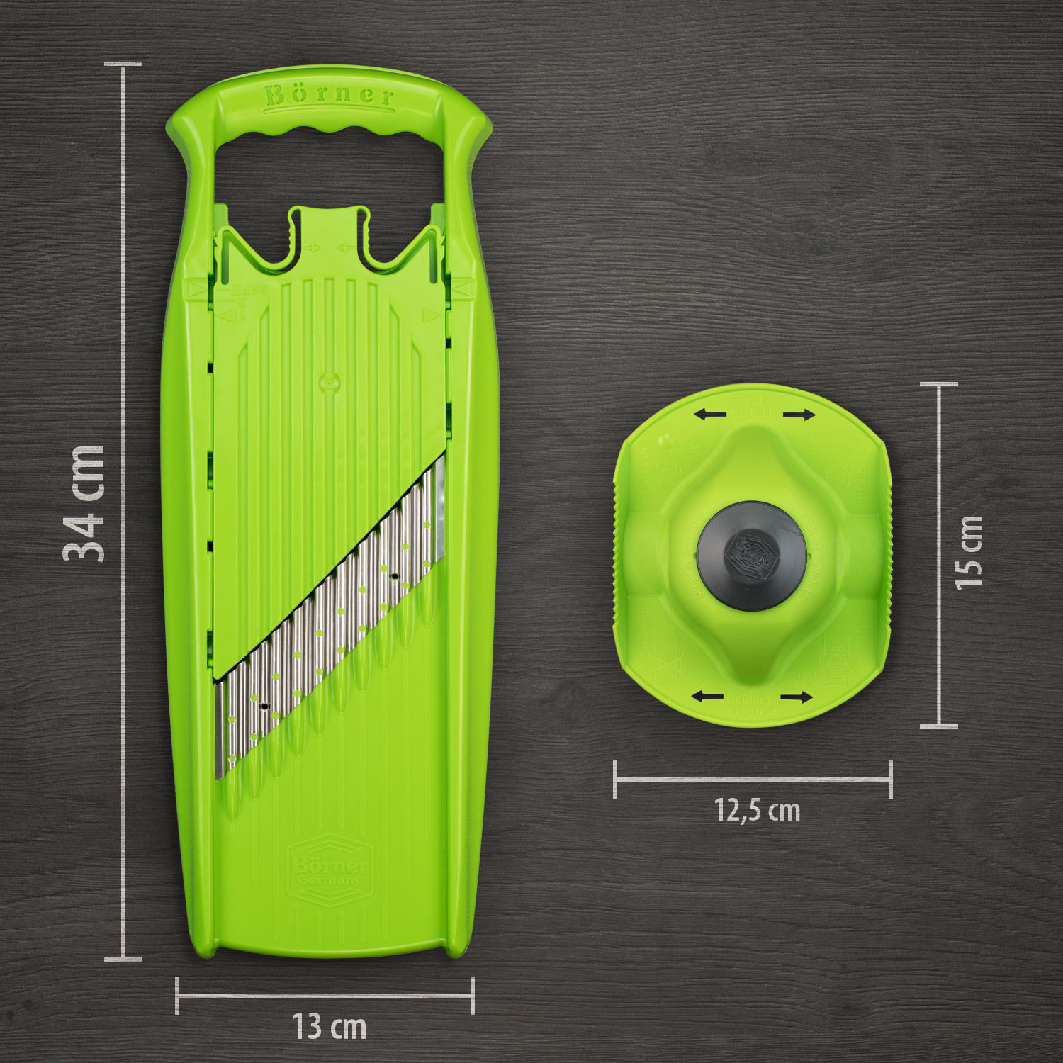 برش‌های وافل و موجی را در دو ضخامت مختلف ایجاد می‌کند. ایده‌آل برای سبزیجات و میوه‌های سفت، ایجاد طرح‌ها و تزئینات تزئینی و جذاب. کودکان عاشق شکل‌های وافل و موجی هستند، حتی آنهایی که مرتباً سبزیجات زیادی نمی‌خورند. توصیه می‌کنیم از نگهدارنده ایمنی مواد غذایی با برش‌دهنده موج پاورلاین استفاده کنید. نگهدارنده را می‌توان جداگانه خریداری کرد. برای تمیز کردن، کمی زیر آب جاری بشویید.