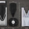 همیشه استفاده از نگهدارنده ایمنی غذای اصلی Borner که همراه محصول است توصیه میشود تا انگشتان شما از تیغههای استیل ضدزنگ و ثبتشده Borner محافظت شود. لوازم جانبی اضافی شامل درج تیغههای ۱.۶ میلیمتری، ۴.۵ میلیمتری و ۱۰ میلیمتری است. برای تمیز کردن، کافی است زیر آب جاری شستشو دهید.